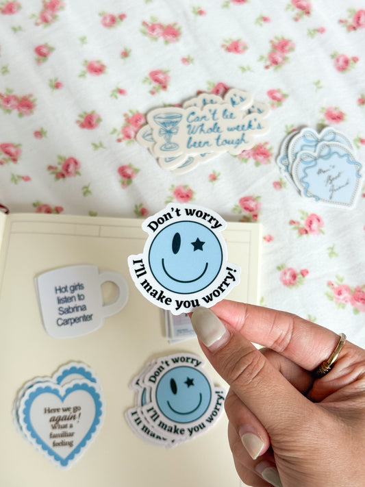 Don't worry, I'll Make You Worry Smiley Face Sabrina Carpenter Vinyl Sticker