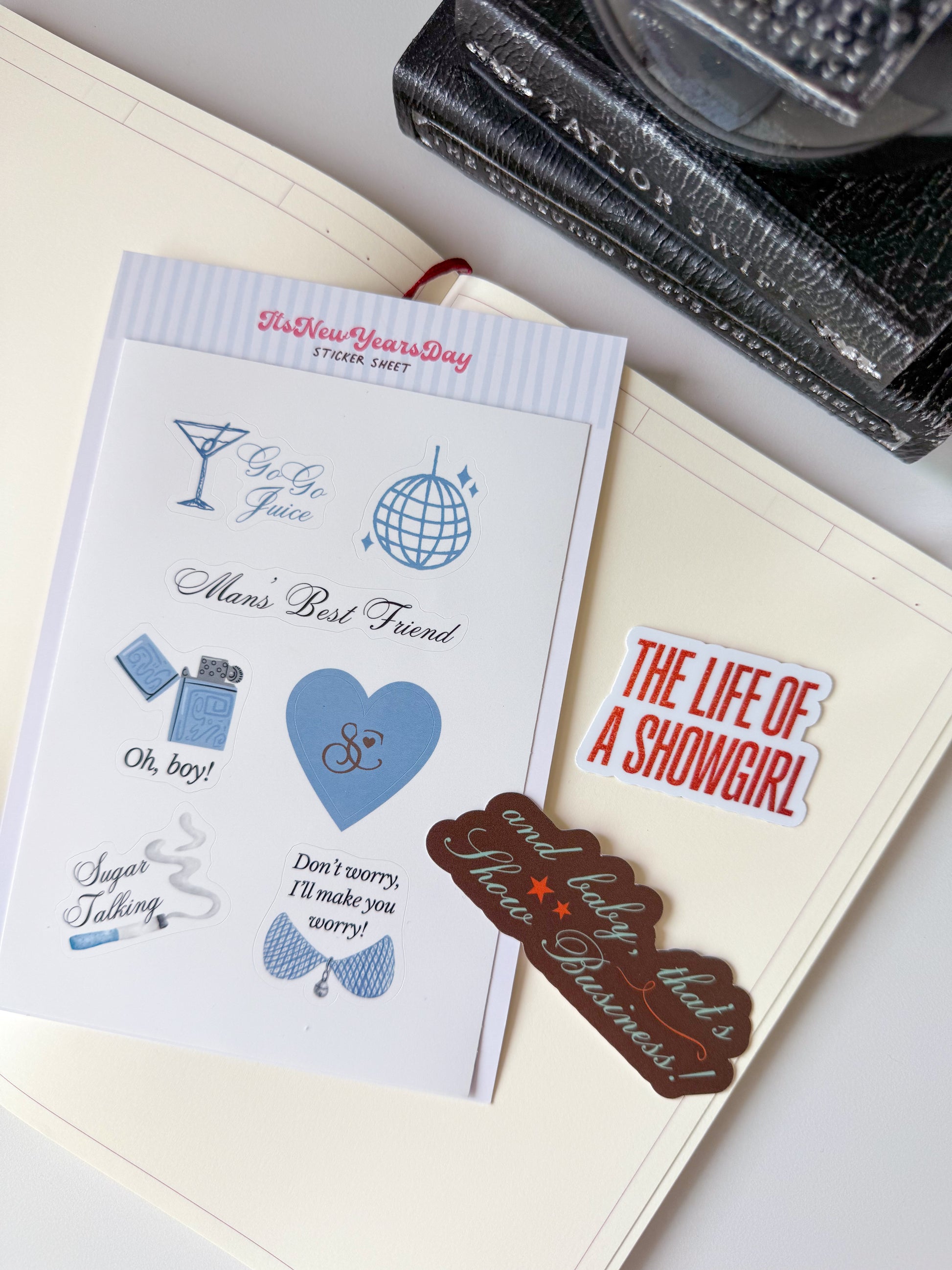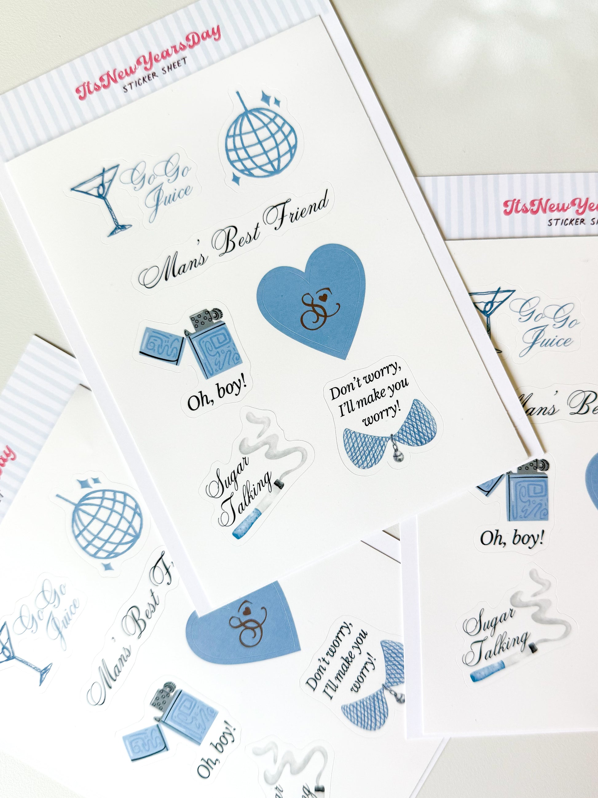 Featuring 6 mini graphic lyric stickers inspired by Sabrina Carpenter's latest album Man's Best Friend. This includes designs inspired by Manchild, Sugar Talking, Don't Worry, and I'll Make You Worry.